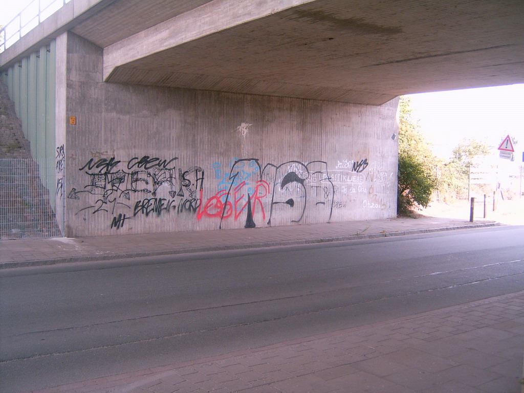 Graffiti and street art from a photo tour in Bremen including colourful sprayed tags and top-to-bottoms.